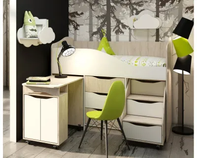 - Кровати с мебелью: Для удобства хранения вещей можно выбрать кровать с встроенными ящиками или тумбочками, что поможет поддерживать порядок в детской.