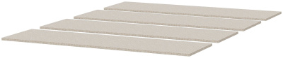 Реечное основание является наиболее подходящим для кроватей. Оно состоит из отдельных полос — ламелей, которые располагаются друг от друга на расстоянии 5-7 миллиметров. Так как между ламелями есть расстояние, то создается хорошая вентиляция матраса. Несомненным плюсом такой конструкции является быстрый и недорогой ремонт. Вместо того, чтобы менять все основание, вам нужно будет заменить только деформированную часть. Ламели могут быть как врезными — вставляются в специальное отверстие, так и накладными — крепятся к основанию с помощью держателей.