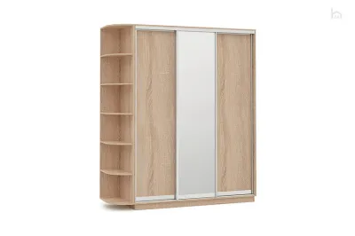 Некоторые модели шкафов-купе имеют дополнительные открытые полки сбоку, что позволяет размещать на них декоративные элементы для разбавления пространства.