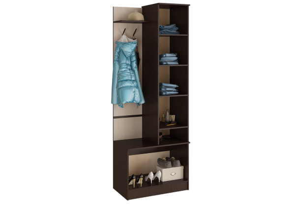 Шкафы для прихожих обычно имеют продуманную внутреннюю организацию с различными отделениями, полками, выдвижными ящиками и специальными держателями для зонтов и других мелких предметов. Многие модели оснащаются открытыми вешалками или крючками для повседневной одежды, что делает ее использование более удобным.